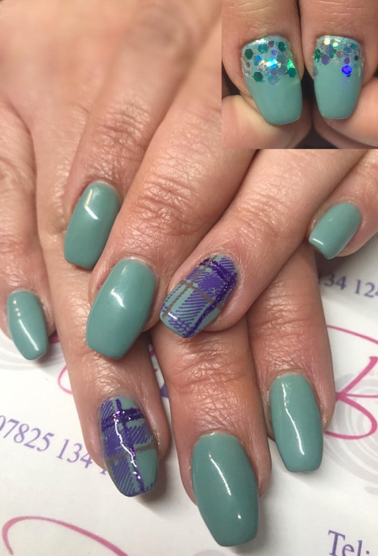** Below is a picture of my nails currently – these are my natural nails, I wear The Gel Bottles BIAB over my natural nails, then colour is Ink Londons iLac i128 Duck Egg then on my ring finger is my first go at a Tartan Nail. What do you think? ?