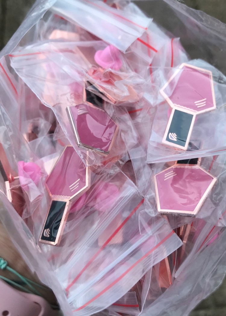 They are so shiny and beautiful. I can’t believe that I actually designed my own pins and I now physically have them .